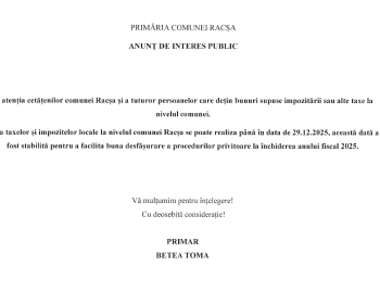 Primăria comunei Racșa a luat ființă în primăvara anului 2010, comuna Racșa fiind compusă din localitățile Racșa și Racșa Vii.
